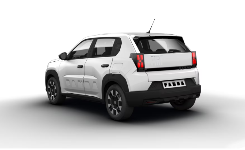 All’esterno, mantiene lo stile inconfondibile della Panda con linee moderne e arrotondate. È dotata di cerchi da 16” in acciaio e fari alogeni.